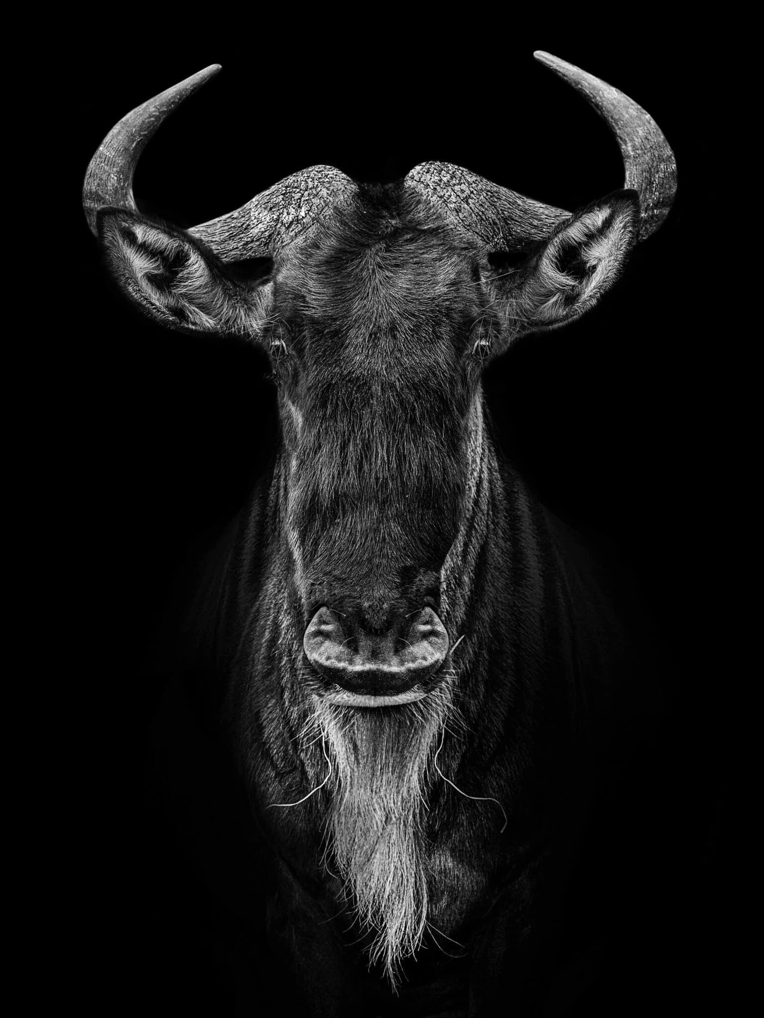 It was always my aim to have a wildebeest in The Portrait Collection but finding the right location where there were no predators and the animals were relaxed was the key.That location (recommended by our guide Simon) was an abandoned lodge due to extensive flooding on the edge of Lake Amboseli, where there was an abundance of food, water and what’s more relatively peaceful.